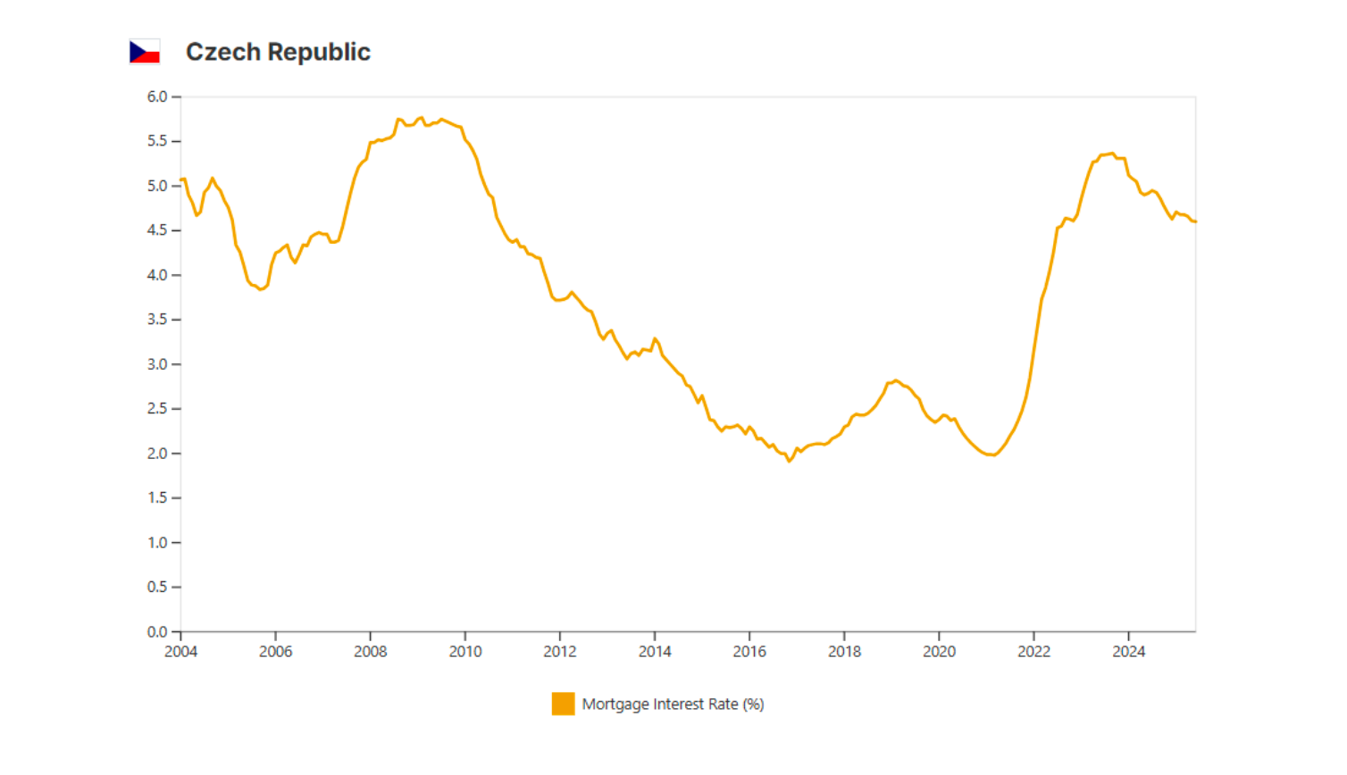 Aktuální nabídkové úrokové sazby hypoték se pohybují kolem pěti procent. Podle Swiss Life Hypoindexu dosáhla průměrná nabídková sazba v lednu 2026 hodnoty 4,94 %, což značí mírný růst po loňském poklesu. Hypotéky se drží mezi 4–5 % ročně a banky své ceníky teď mění jen kosmeticky. Dle prognózy Česká národní banka zatím neplánuje výrazně snižovat sazby, takže nepočítejte s rychlým poklesem.