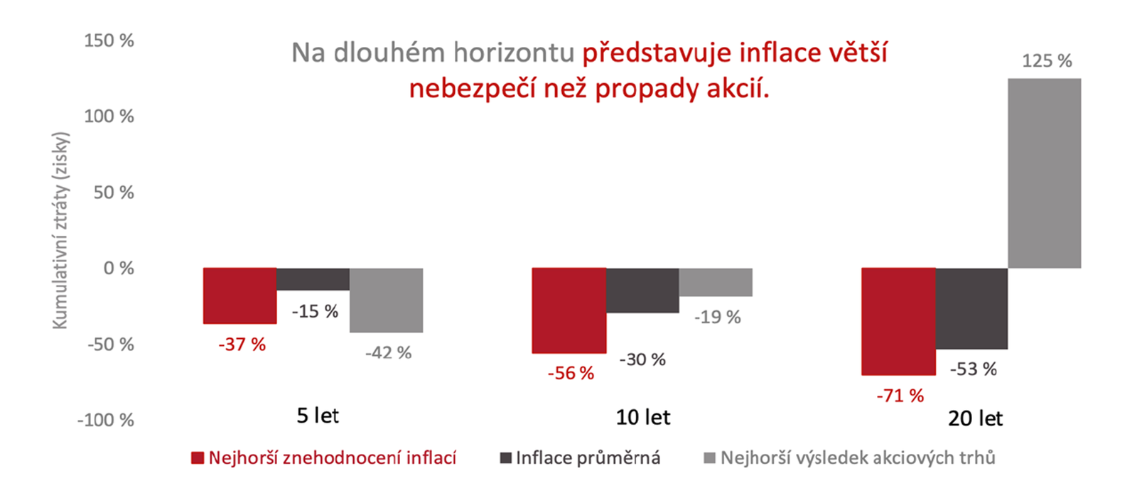 - U dvacetiletého horizontu se v historii nestalo, že by člověk nedokázal porazit inflaci.