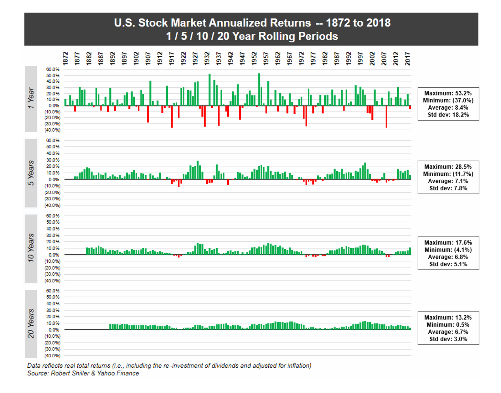 - Akciový trh s ročním horizontem je kasíno a rozptyl výnosů může být +53% až mínus 37%